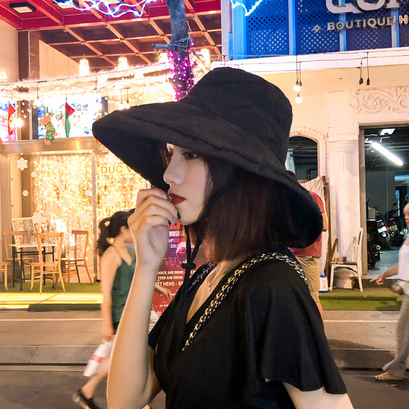 Big brim fisherman hat women's summer sunshade face sunscreen UV protection Korean version of the wild adjustable sun hat