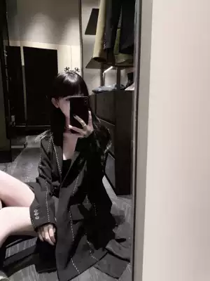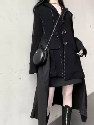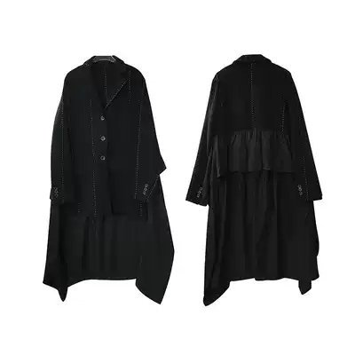 (Spike clearance) 50%wool patchwork copper ammonia silk black bright line decoration dark front short rear long jacket