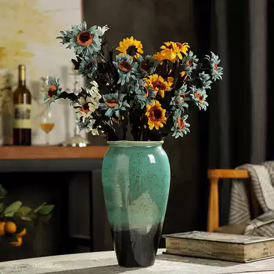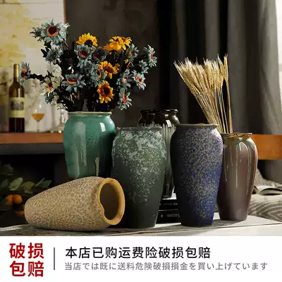 Ceramic hydroponic flower vase retro old ornaments living room flower arrangement Jingdezhen coarse pottery jar table decoration decoration