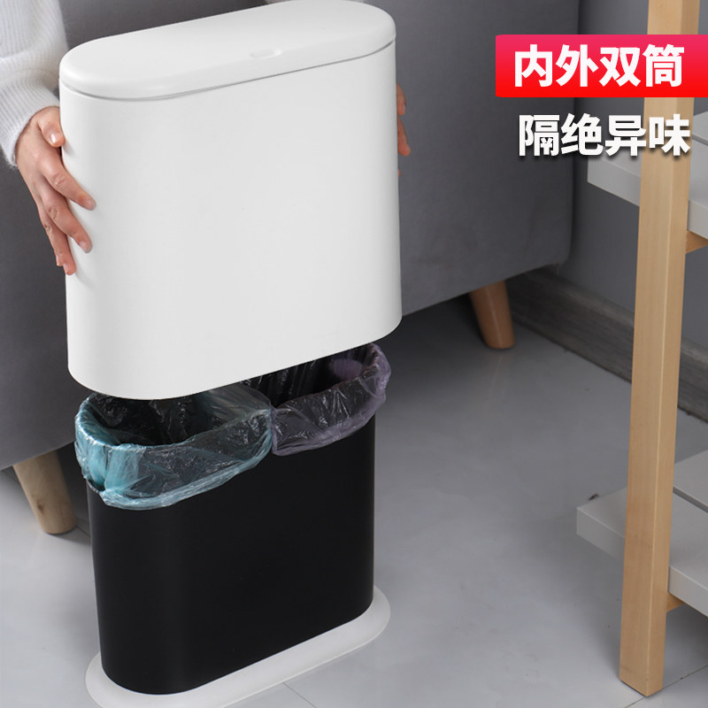 Trash can Household living room creative crevice kitchen High-grade covered garbage powder room toilet Narrow toilet paper basket with lid