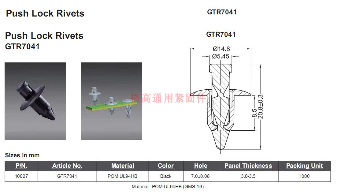 Black car interior panel plastic button GTR7041 push rivet mounting hole 7 plate thick 3~3 5MM