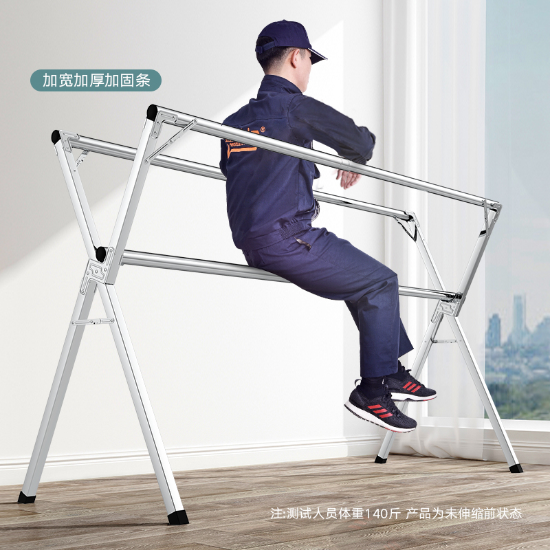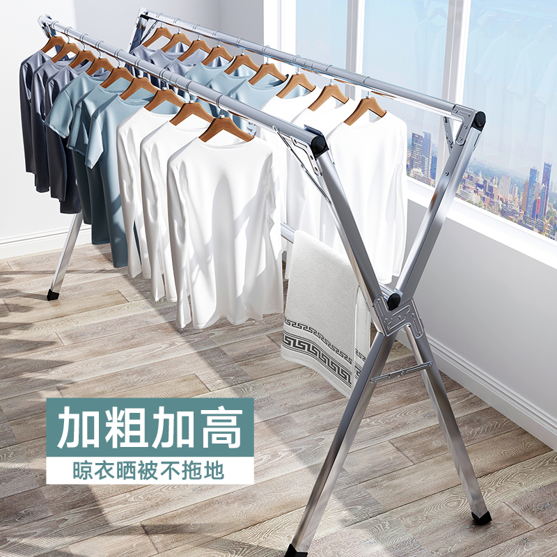 Clothes rack Floor folding indoor stainless steel double rod telescopic clothes rack Balcony drying rack cool quilt artifact