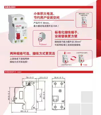 Delixi leakage protection air switch DZ47PLEY 2P 10A16A20A25A32A63A phase line plus