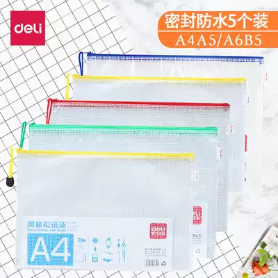 5pcs of Deli grid file bag Color zipper bag Grid bag series Office data storage bag Student exam stationery bag Transparent waterproof A4 A5 office supplies