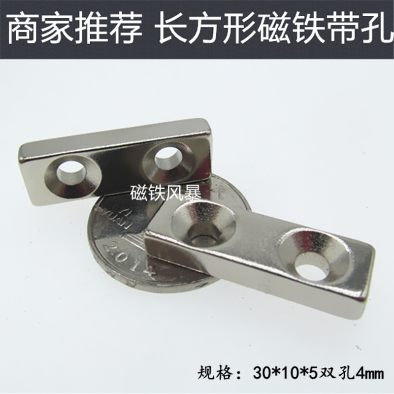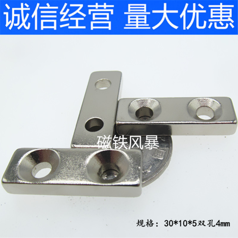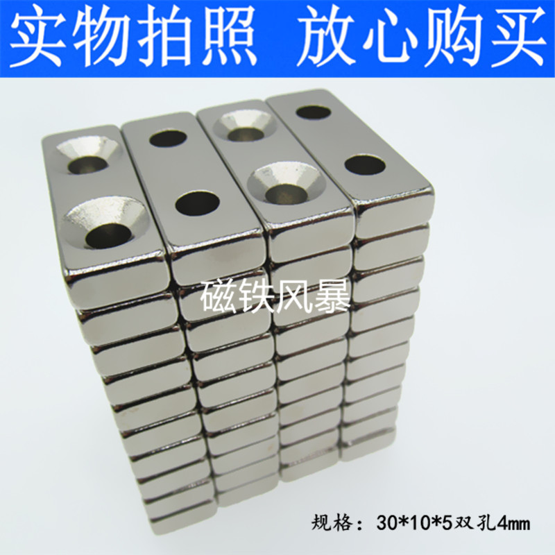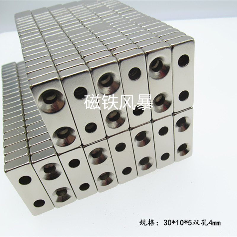 Strong magnet 30X10X5-4MM magnet magnetic steel rectangular magnet with holes 30 * 10 * 5 double holes 4mm