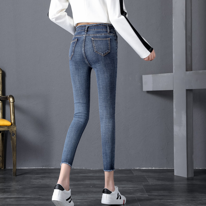 2021 new spring high-waisted net red jeans women's slim fit and slim retro tight nine-point pencil pants women