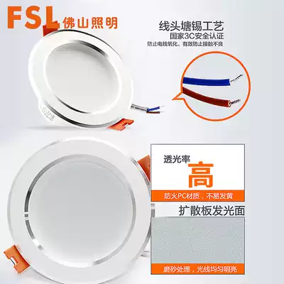 Foshan lighting Household downlight LED ceiling light 3W5w Embedded living room ceiling hole spot light Hole light Bull's eye light