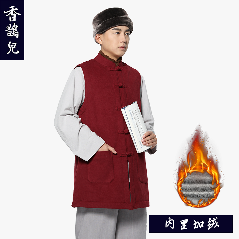 Shangyuanxiang magpie double-layer plush short kalan jacket high warm lining winter thickened vest vest monk clothing vest