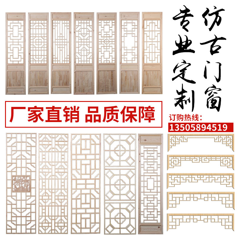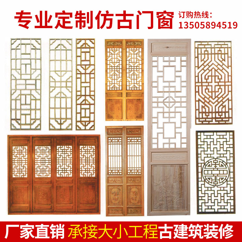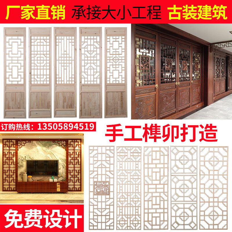 Jihong Dongyang wood carving Chinese style lattice entrance partition Solid wood doors and windows carving Chinese antique screen Antique doors and windows