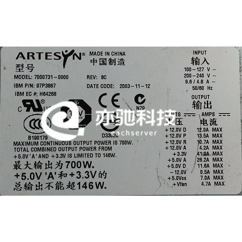 Spot IBM P520 P52A Small machine power supply 850W 39J4951 97P2330 7001087-Y000