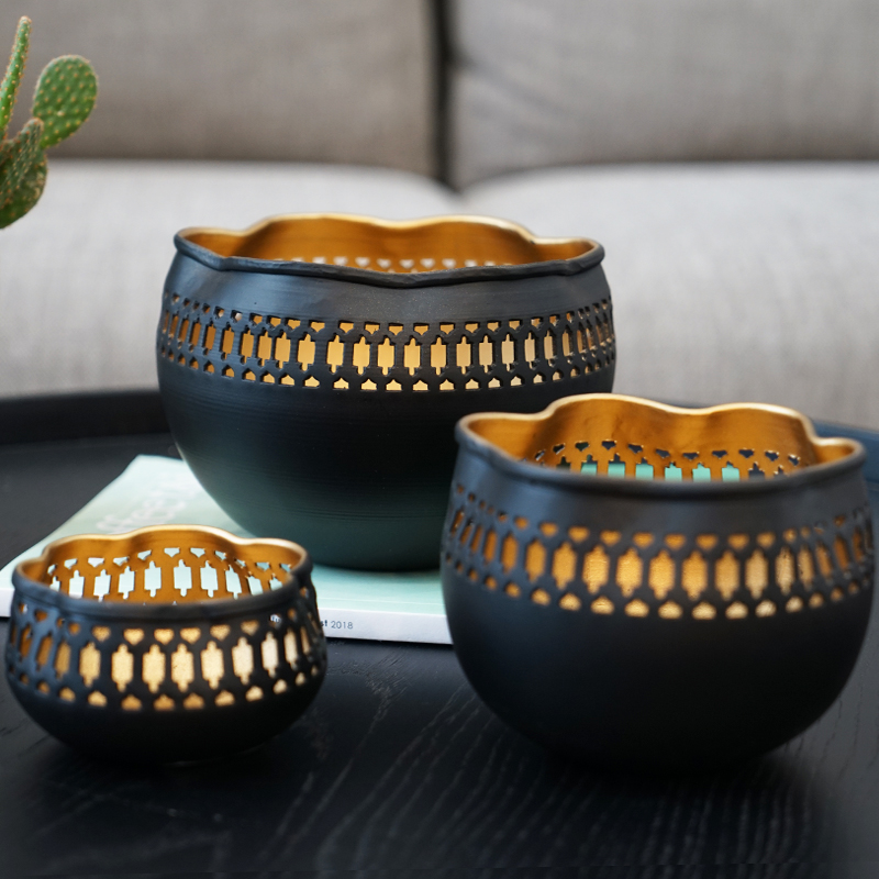 Home Decoration Goods Table Swing Piece Living Room TV Cabinet Furnishing Creative Florist Flower Pot Hollowed-out Candle Holder Modern Brief