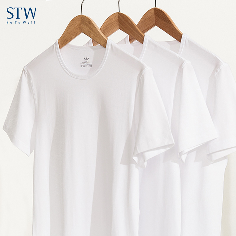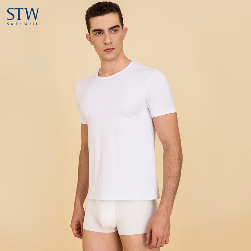 STW Short-sleeved T-shirt Men Model Cotton Leisure Leisure and Loose Men's White Half-sleeved Top Clothes