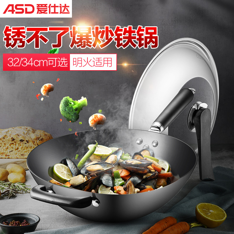 Love Shida Iron Pan Not Rusty Old Traditional Home Without Coating Frying Pan Round Base Gas Suitable Fine Iron Frying Pan