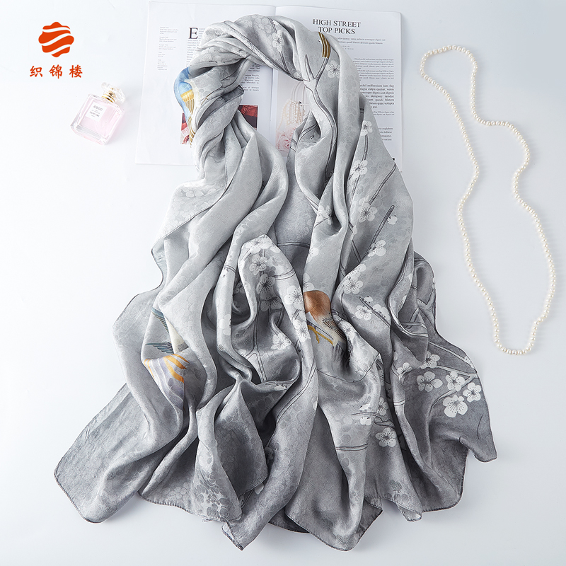 Weaving Brocade Spring Printed Scarves Lady Real Silk Long Version Shawl Hangzhou Silk Mulberry Silk Scarlet Temperament