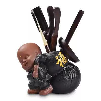 Haofeng Creative ebony monk tea ceremony Six gentlemen Kung Fu tea accessories set Tea tray Tea ornaments
