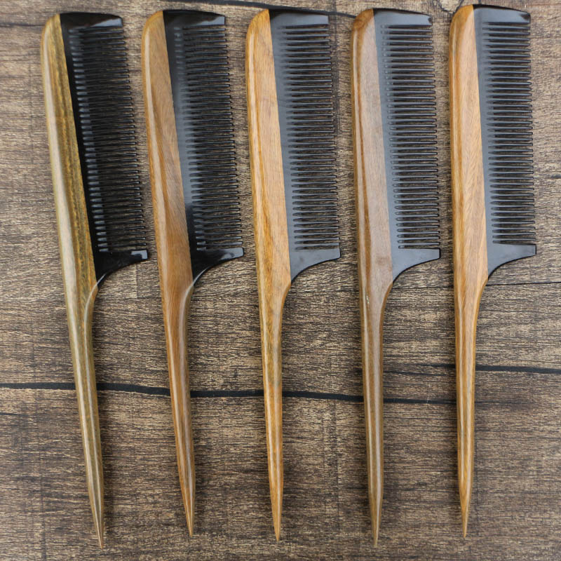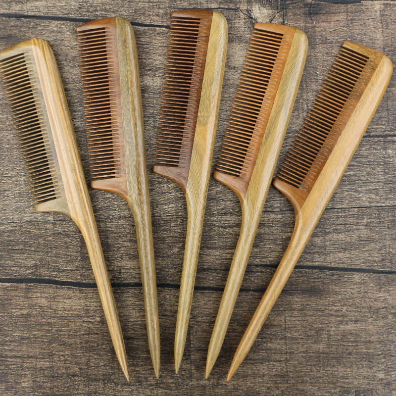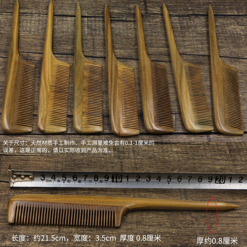 Natural green sandalwood comb fine sandalwood comb pointed tail comb distribution comb anti - static