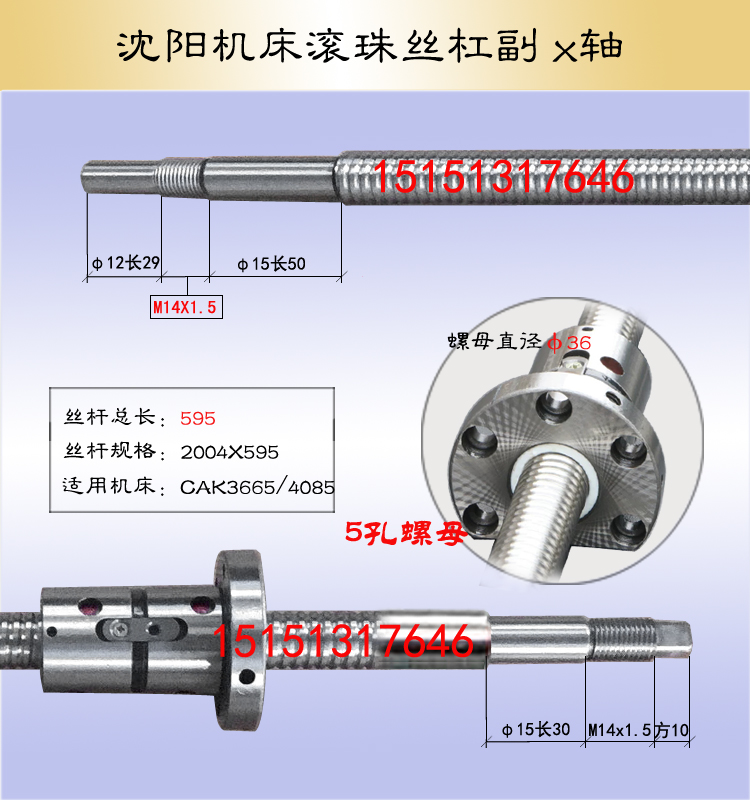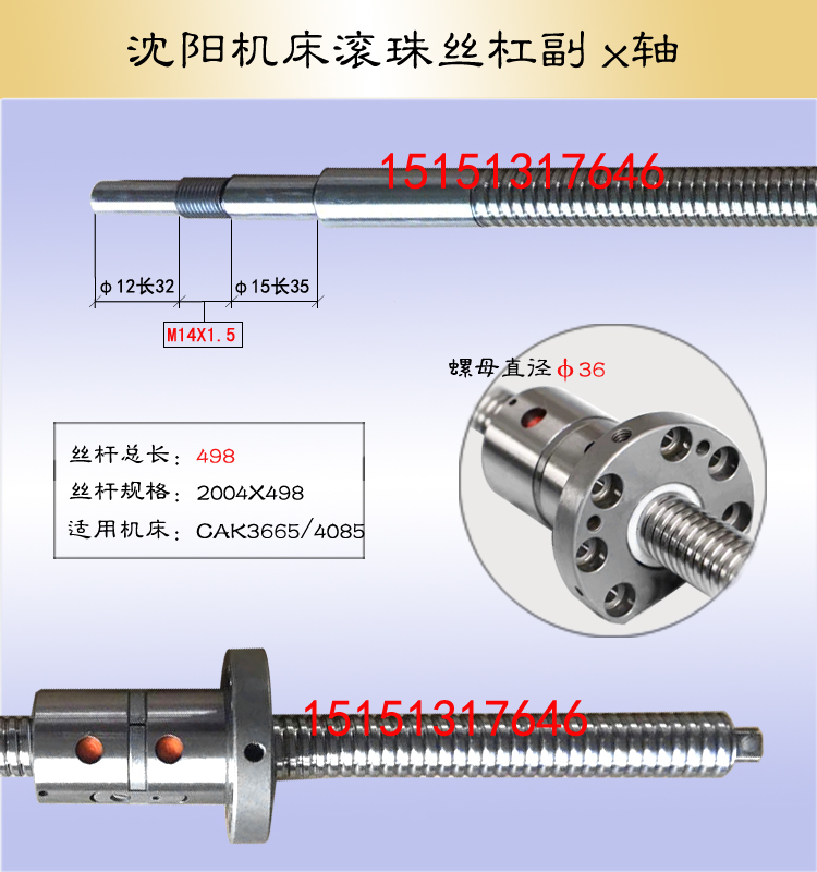 Shenyang machine bed screw CAK6136 3665 3675 CNC bed middle tow plate X axis original ball screw