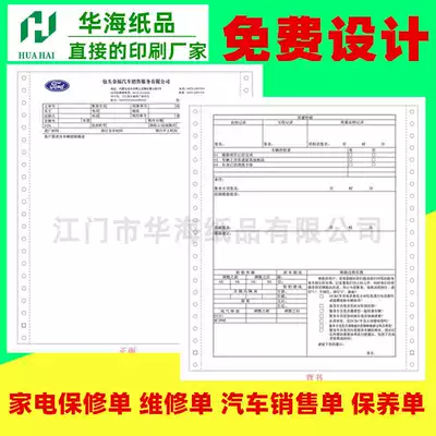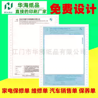 Erlian photocopying paper custom car beauty shop receipt repair order car single car repair sheet Hangzhou printing