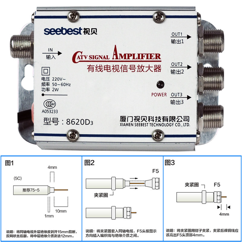 Jemax cable TV signal amplifier one-point three-point digital TV distributor booster one-in-three-out
