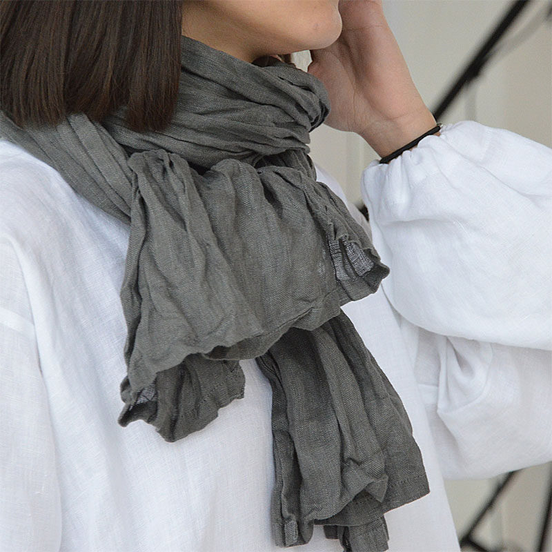 Occasionally French numb art minimalist couple scarf practical long version dark grey washed linen soft windproof