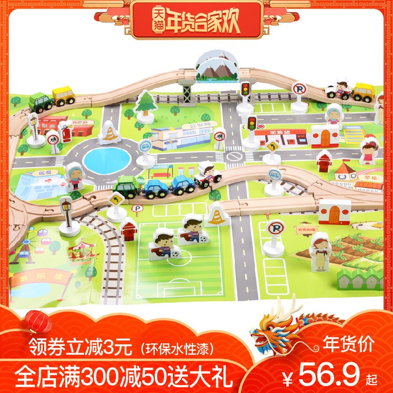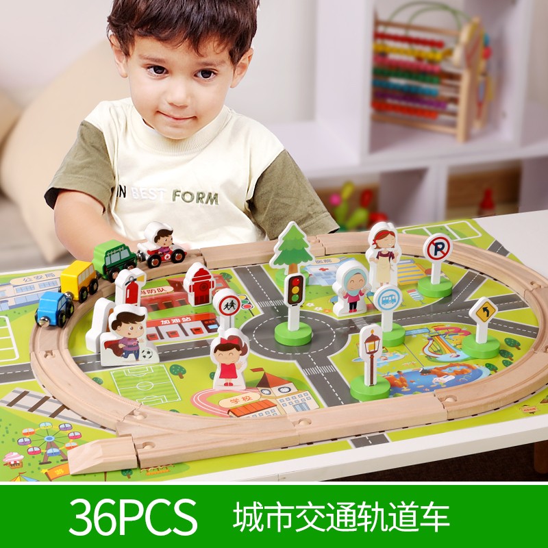 Wood Pellets City Rail Transport Suit Wooden Building Blocks Children Puzzle-assembled toy car over 1-3 years old