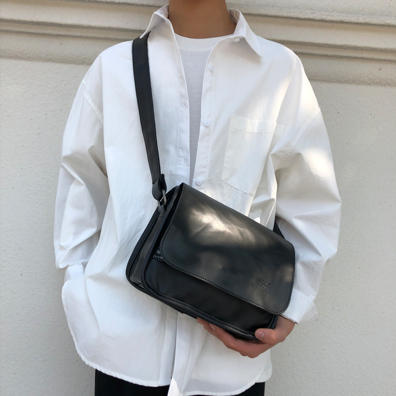 Literary youth leather messenger bag waterproof work shoulder bag men's Hong Kong style back backpack Japanese retro wild leather bag