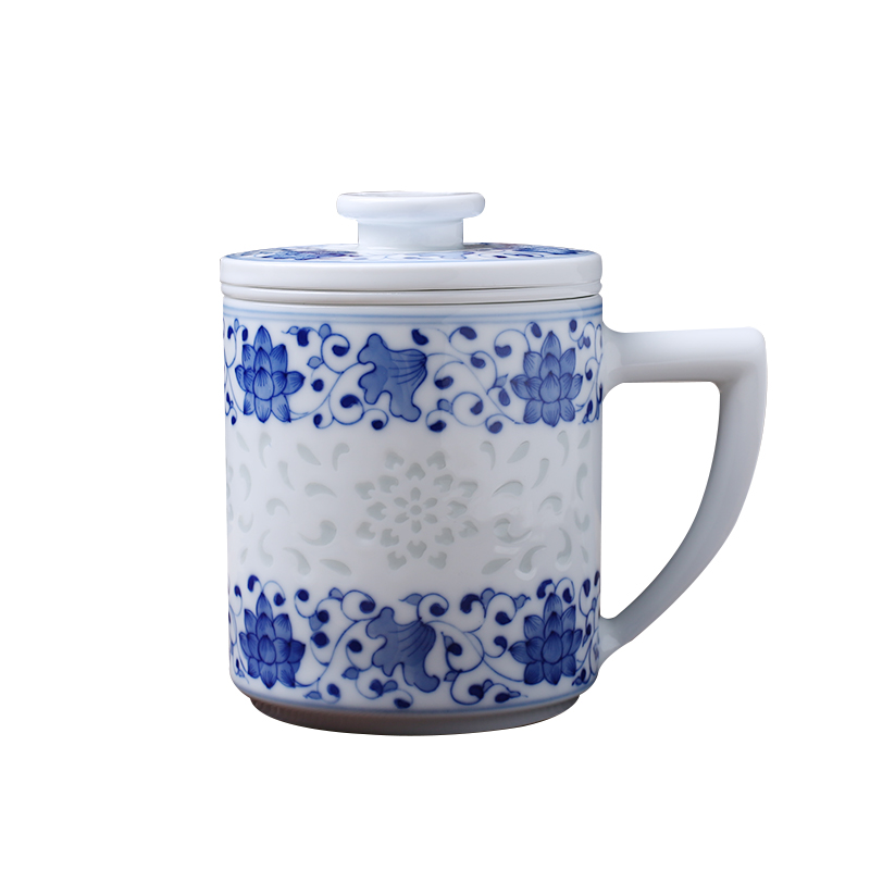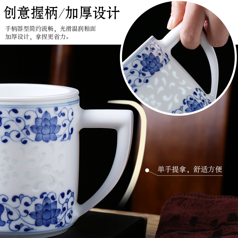 Zhengzong Jingde Town hand painted green flower Lingang ceramic with lid liner filter tea cup office tea cup Three sets