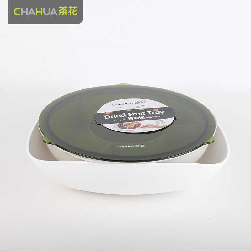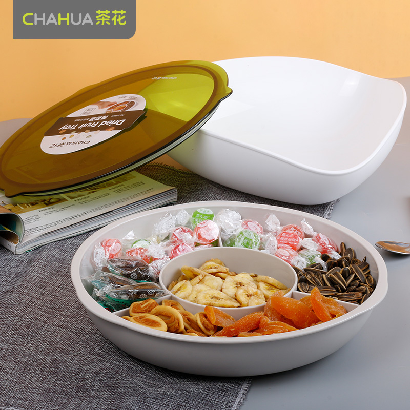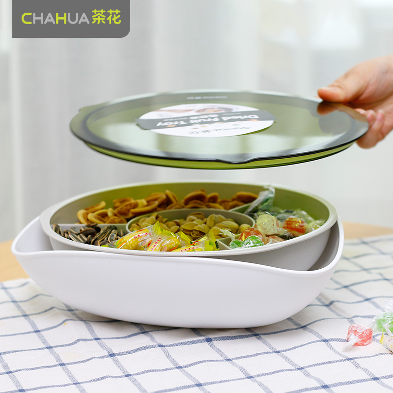 Camellia dried fruit plate sub-grid melon seed plate home living room candy box fruit plate plastic double-layer fruit plate box with lid