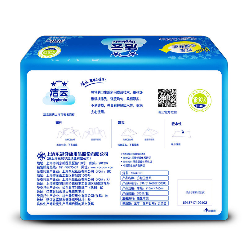 Clean cloud flat toilet paper toilet paper 300 sheets of ligaments embossed straw paper Home Family affordable whole box 42 packs