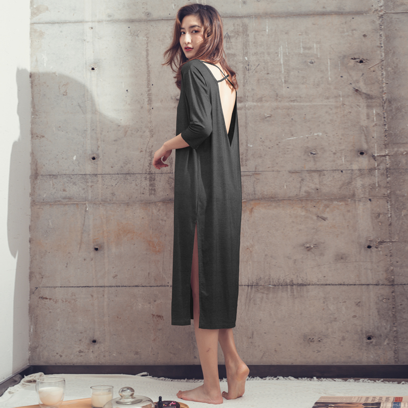 Modale Sexy Dew Back Sleeping Dress Child Summer Thin spring autumn pregnant woman with chest cushion pyjamas home for a long version of dress