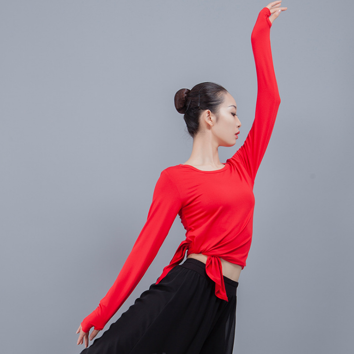 Dance practice suit Long sleeve modern dance top Female adult Modal bevel finger classical dance Latin dance suit
