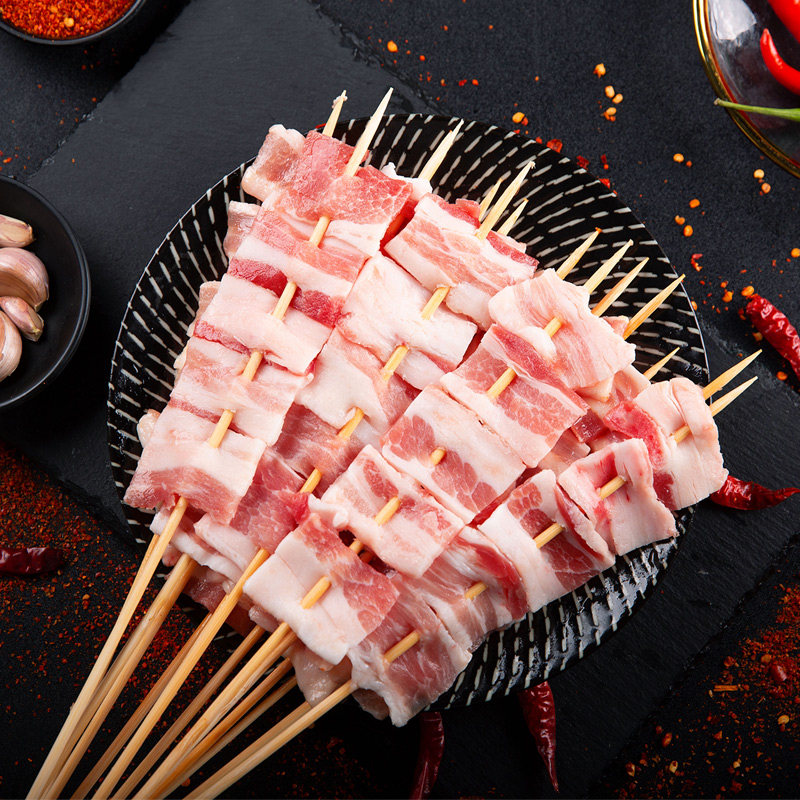 Grill ingredients pork belly skewers semi-finished pork skewers 5 fresh skewers