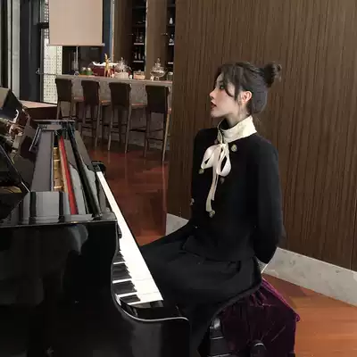 Hepburn style can salt can be sweet large size women's dress small man High cold royal sister wind mature retro two-piece female