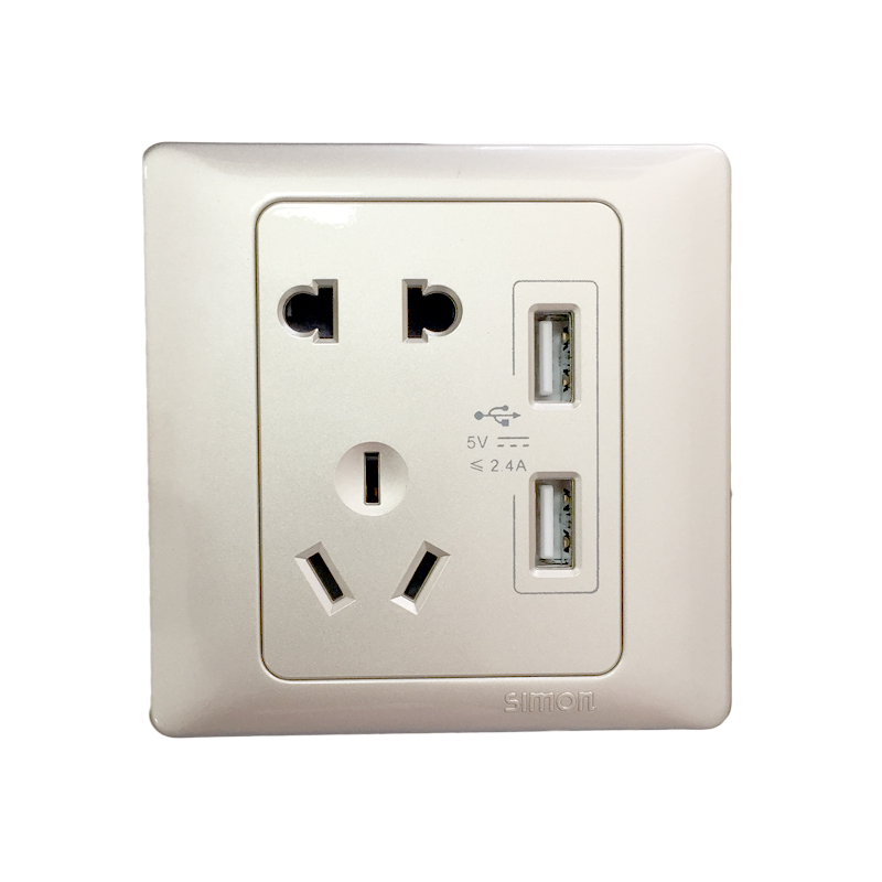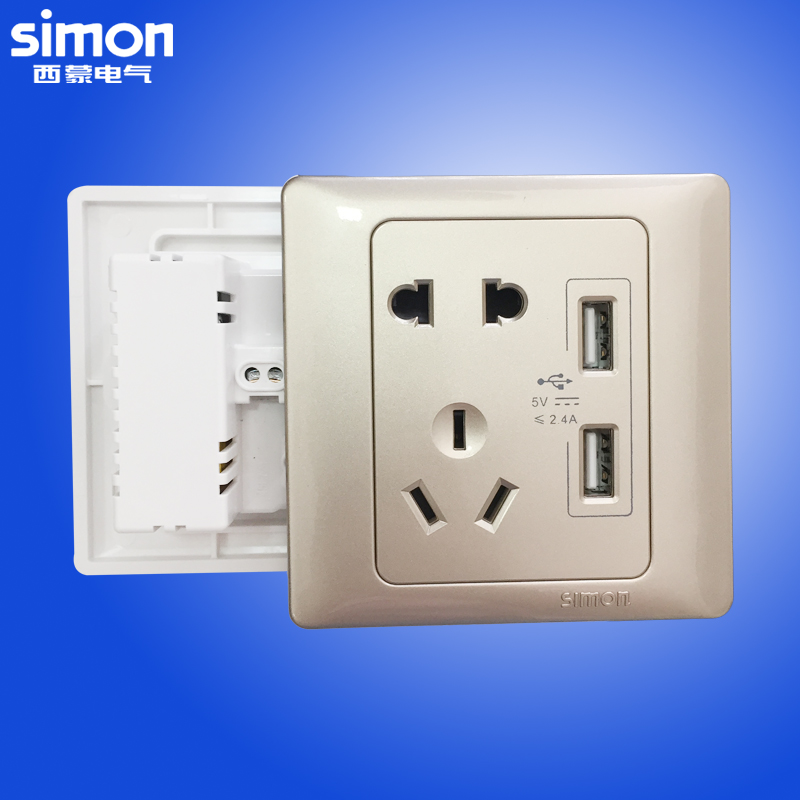 Simon with double usb charging five-hole socket panel 86 Type of wall 5-hole switch socket Home 5-hole socket