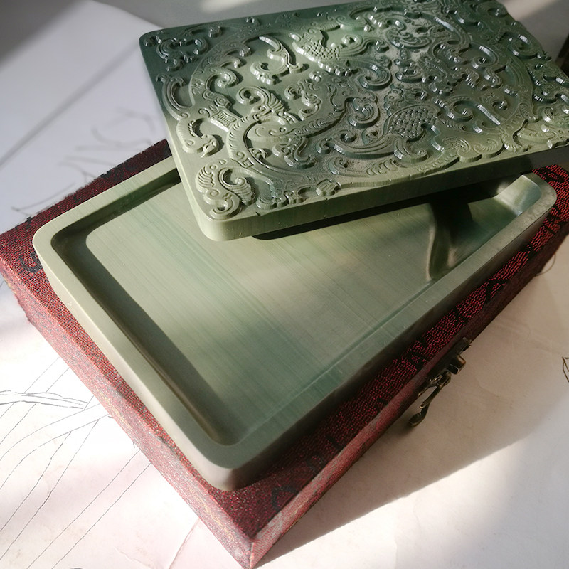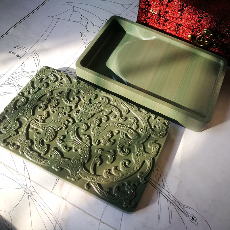 Inkstone natural original stone re-engraved Palace Museum style Songhua inkstone ancient dragon and phoenix with cover calligraphy supplies