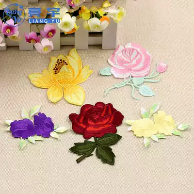 Embroidery patch subsidy embroidery rose flower color cloth patch clothes cloth decal pattern small hole hole hole patch