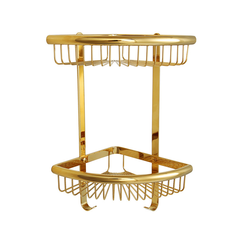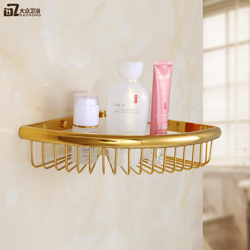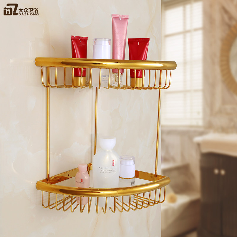 All copper triangle basket European style toilet corner rack bathroom gold mesh basket double layer titanium shelf pendant wall hanging