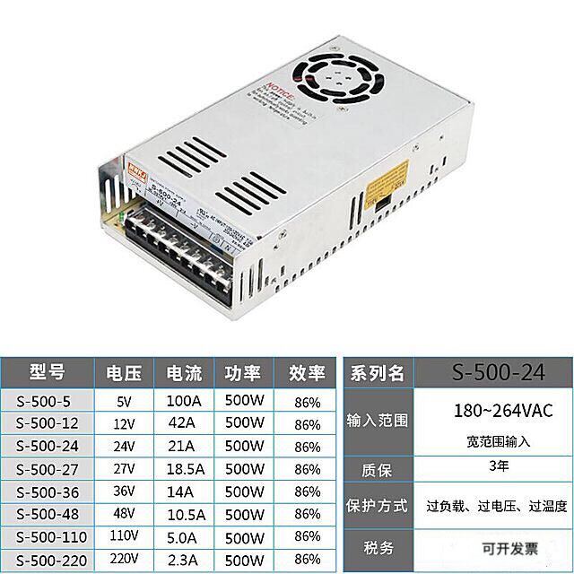Direct sales 500W High power switching power supply 24V small S-500-24V21A Small size W foot power 12v48v