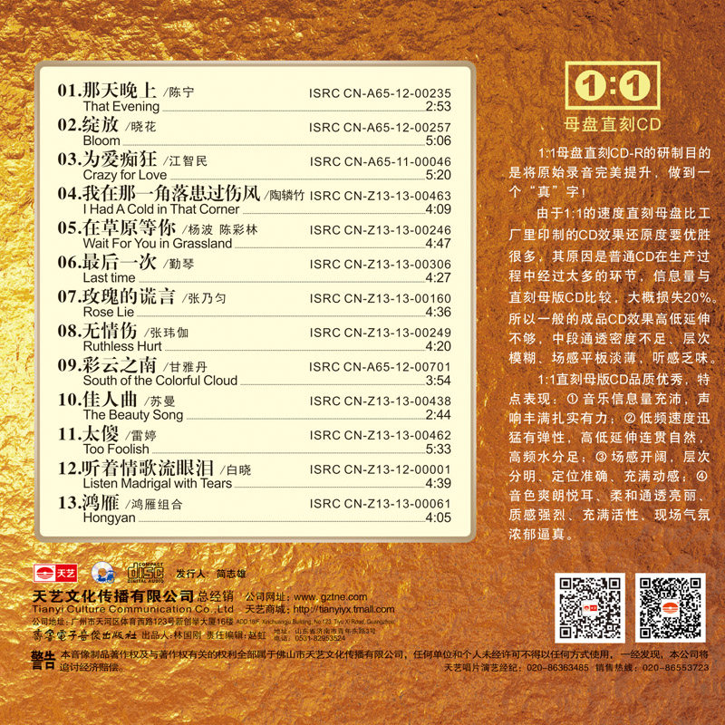 Sky Art Record Celebrity Fame Song Collector Master 1: 1 Mother Disc Straight Engraving CD High Quality On-board Undistorted Fever Dish