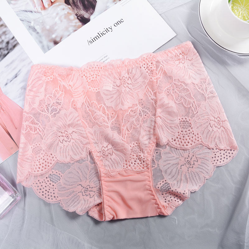 Wholesale Lace Fabric Ladies Panties Sexy See Through Mid Waist High Waist Pure Cotton Crotch No Trace Large Size Ladies Briefs