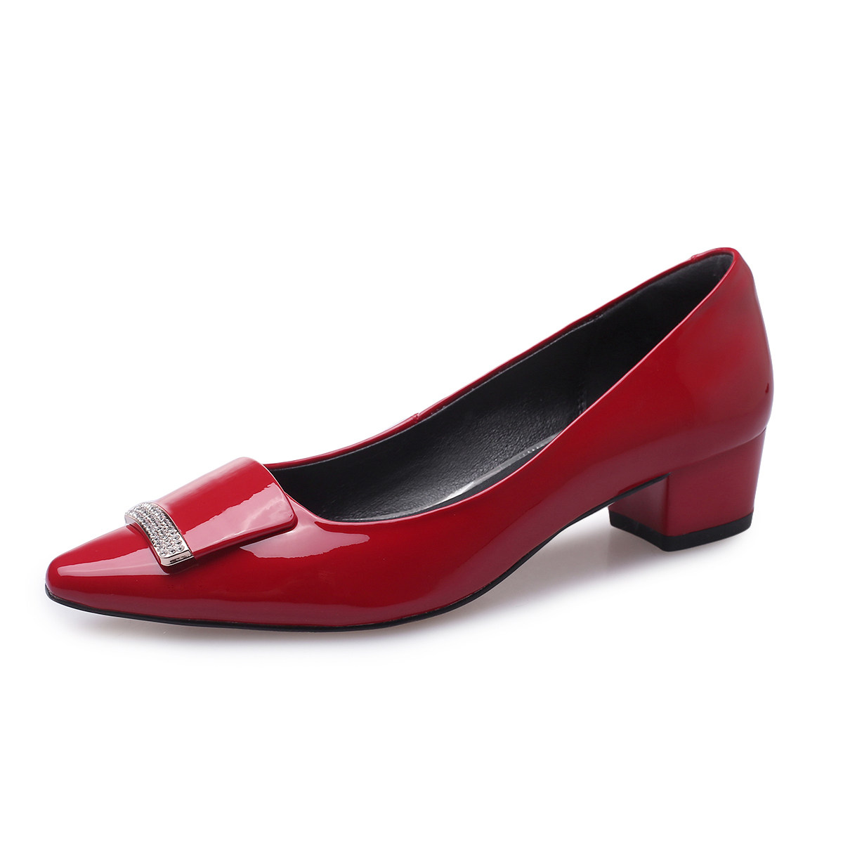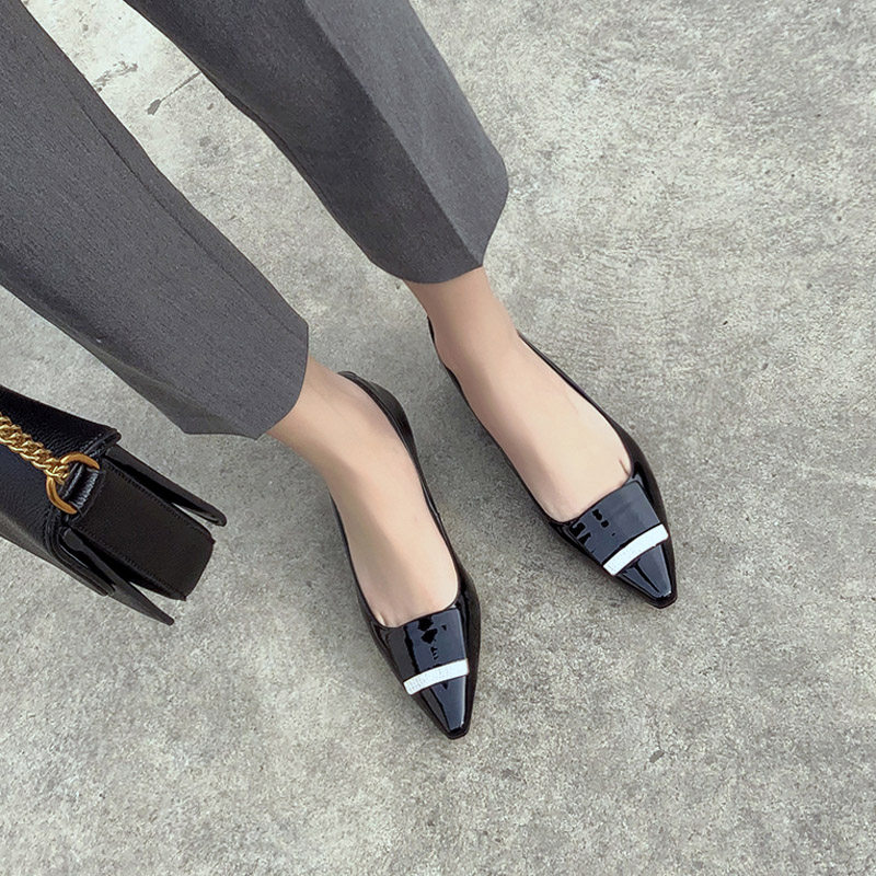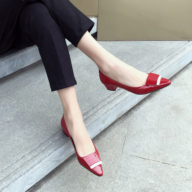 Small leather shoes black leather tip in heels spring and autumn new rough red shallow low heels shoes