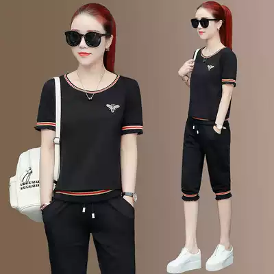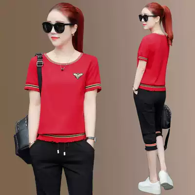 2021 summer new women's fashion short sleeve Capri pants Korean casual sportswear set women's foreign style two-piece set