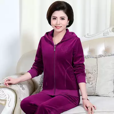 Golden Velvet Leisure Sportswear Set Women 2021 Spring and Autumn New Fashion Korean version of middle-aged and elderly mother two-piece set