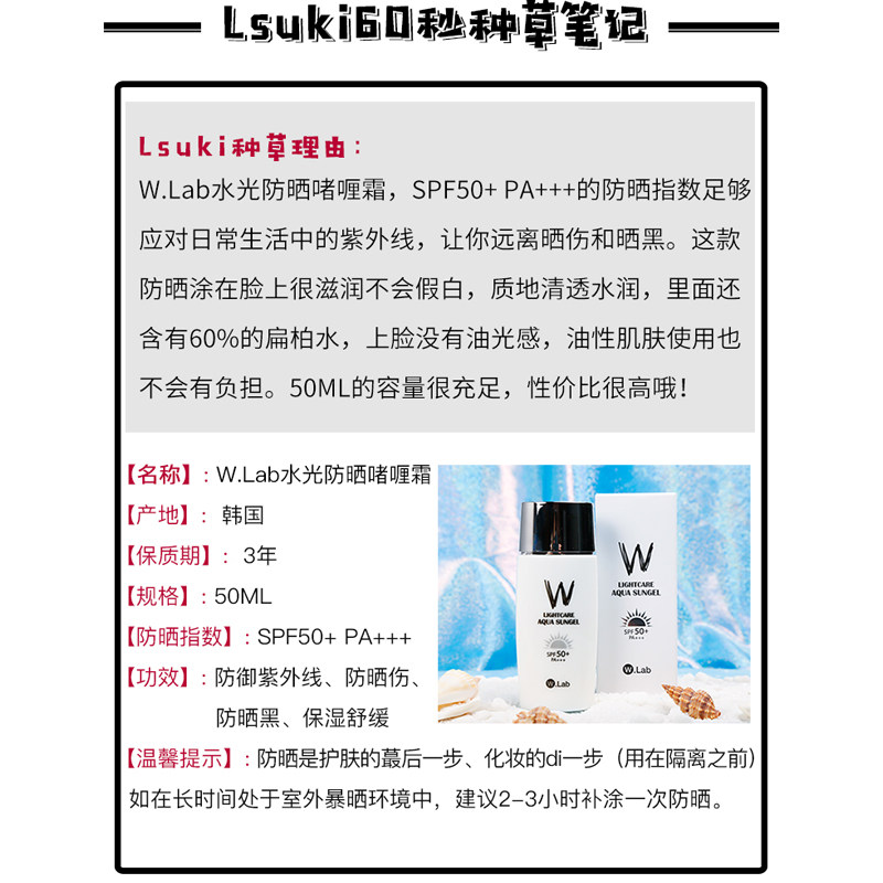 wlab anti-sunscreen w lab anti-sunburn isolation water resistant UV resistant female facial neck student party 50