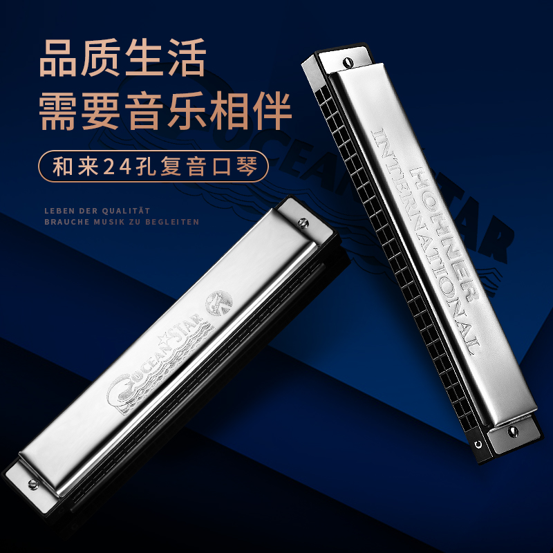GERMAN HOHNER AND COME 24-HOLE POLYPHONIC HARMONICA BEGINNER STUDENTS CHILDREN FREE LETTERING