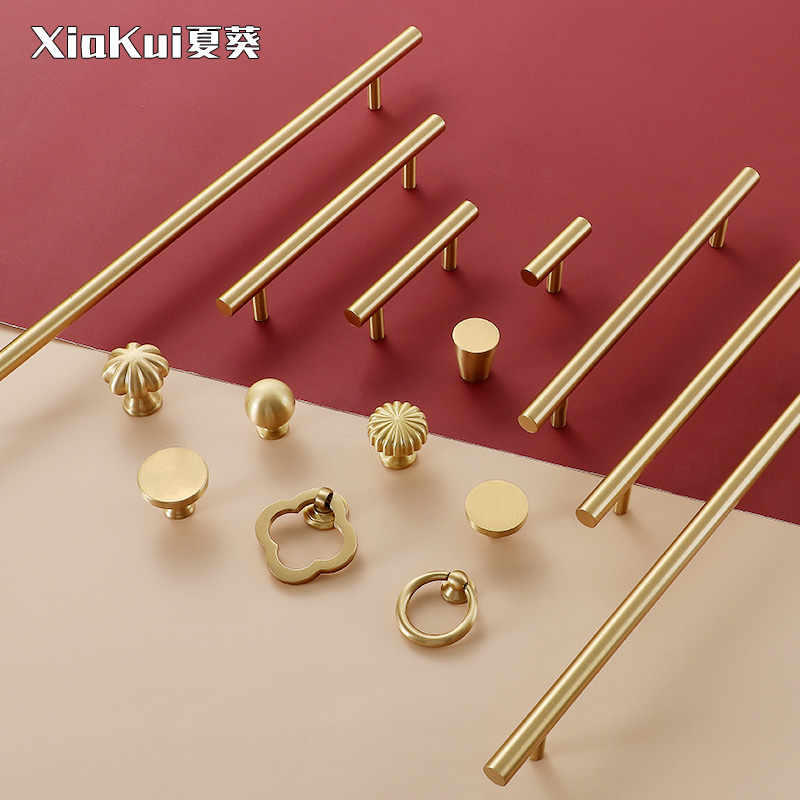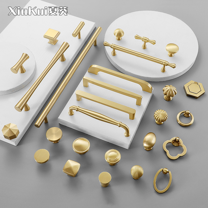 Light luxury brass wardrobe handle golden Nordic modern minimalist all copper drawer round single hole overall cabinet door pure copper handle