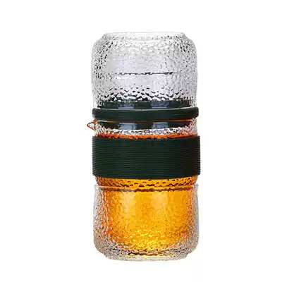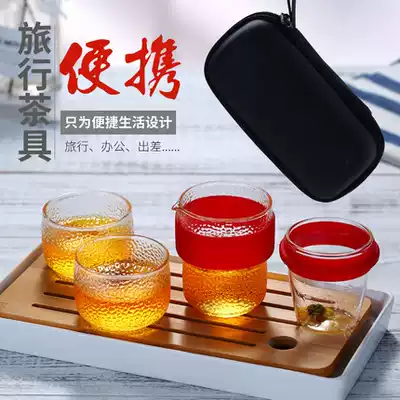 Heat-resistant hammer glass fast guest Cup travel tea set outdoor tea cup storage bag one pot two cups floating cup two cups for two people