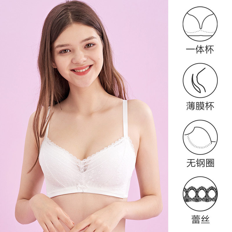 bodypops white romantic gathered comfortable breathable lace no rim bra women's bra underwear thin section