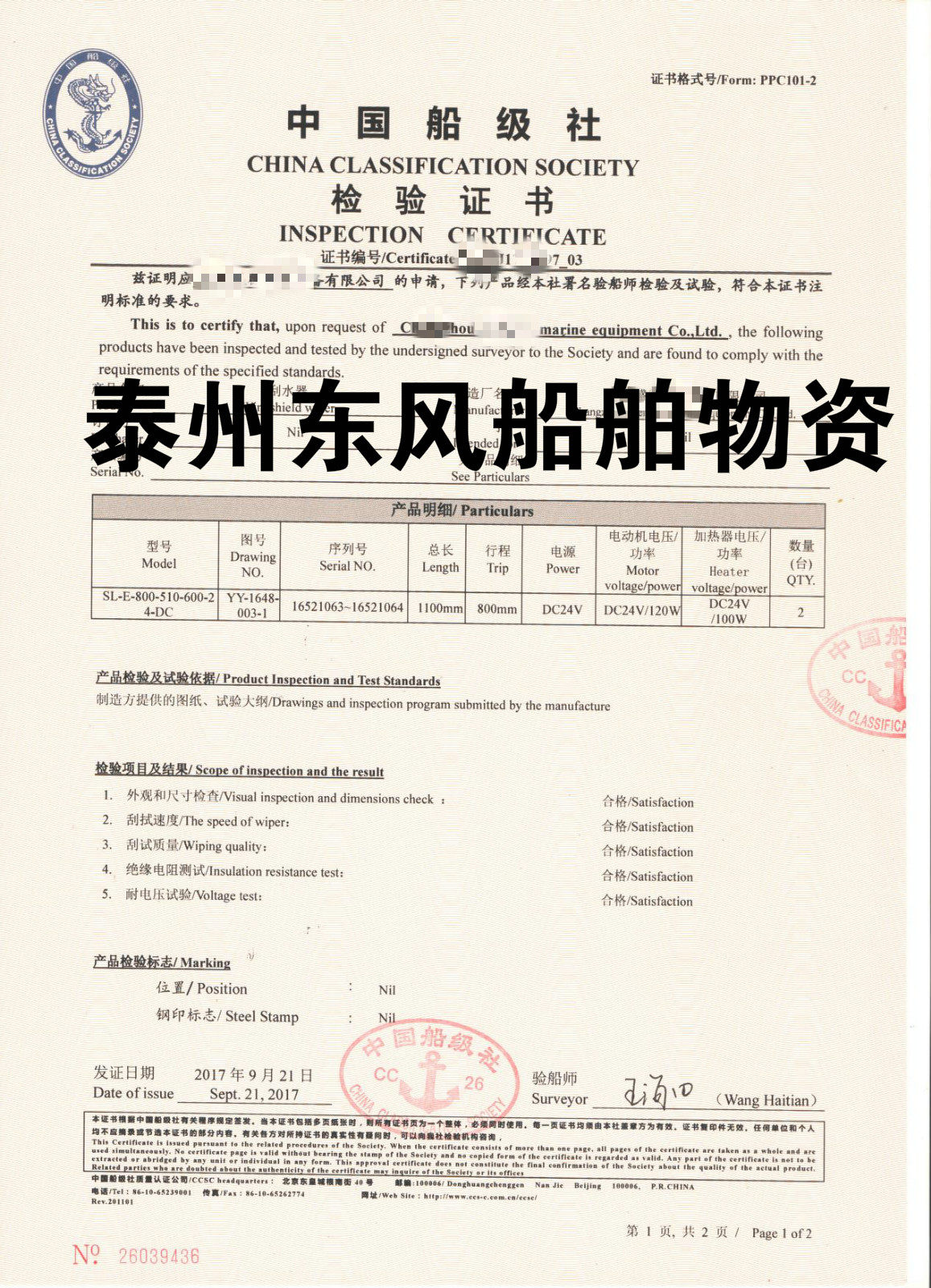 WGP2-J-P-R marine translational wiper wiper 1 m * 8 m 0 line CCS certificate