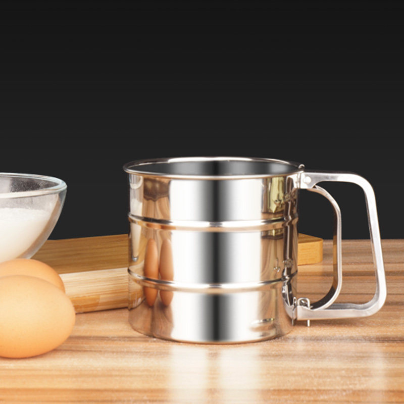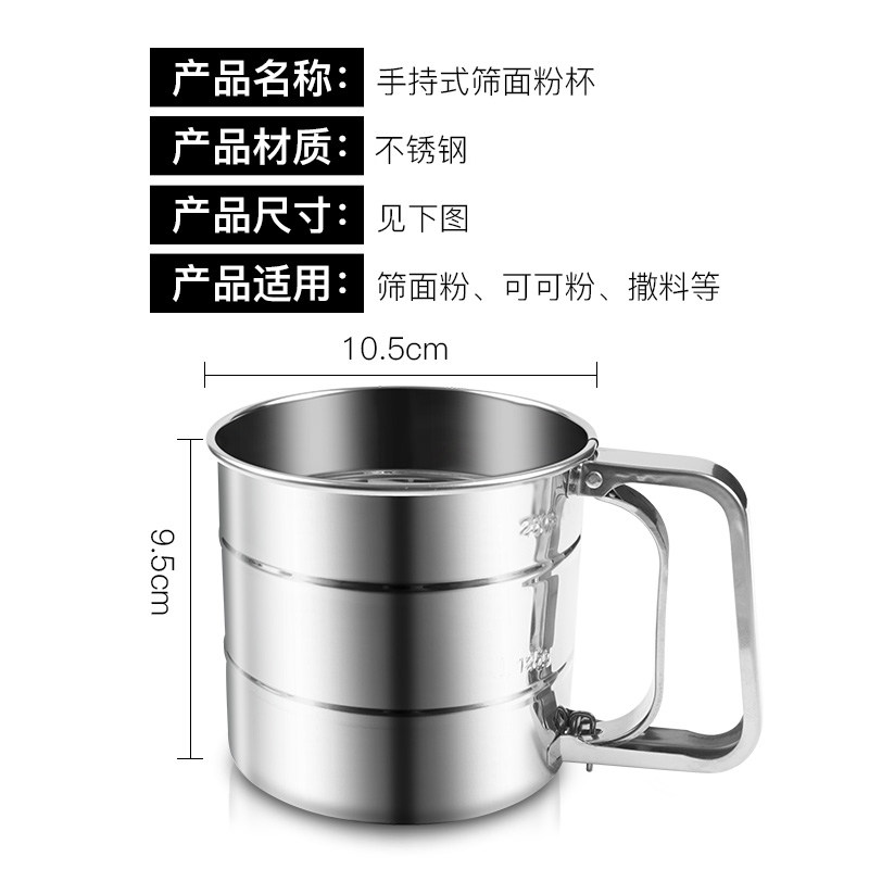 304 stainless steel flour sieve Baking round filter screen Hand-held household sieve Semi-automatic mesh Powdered sugar cup type
